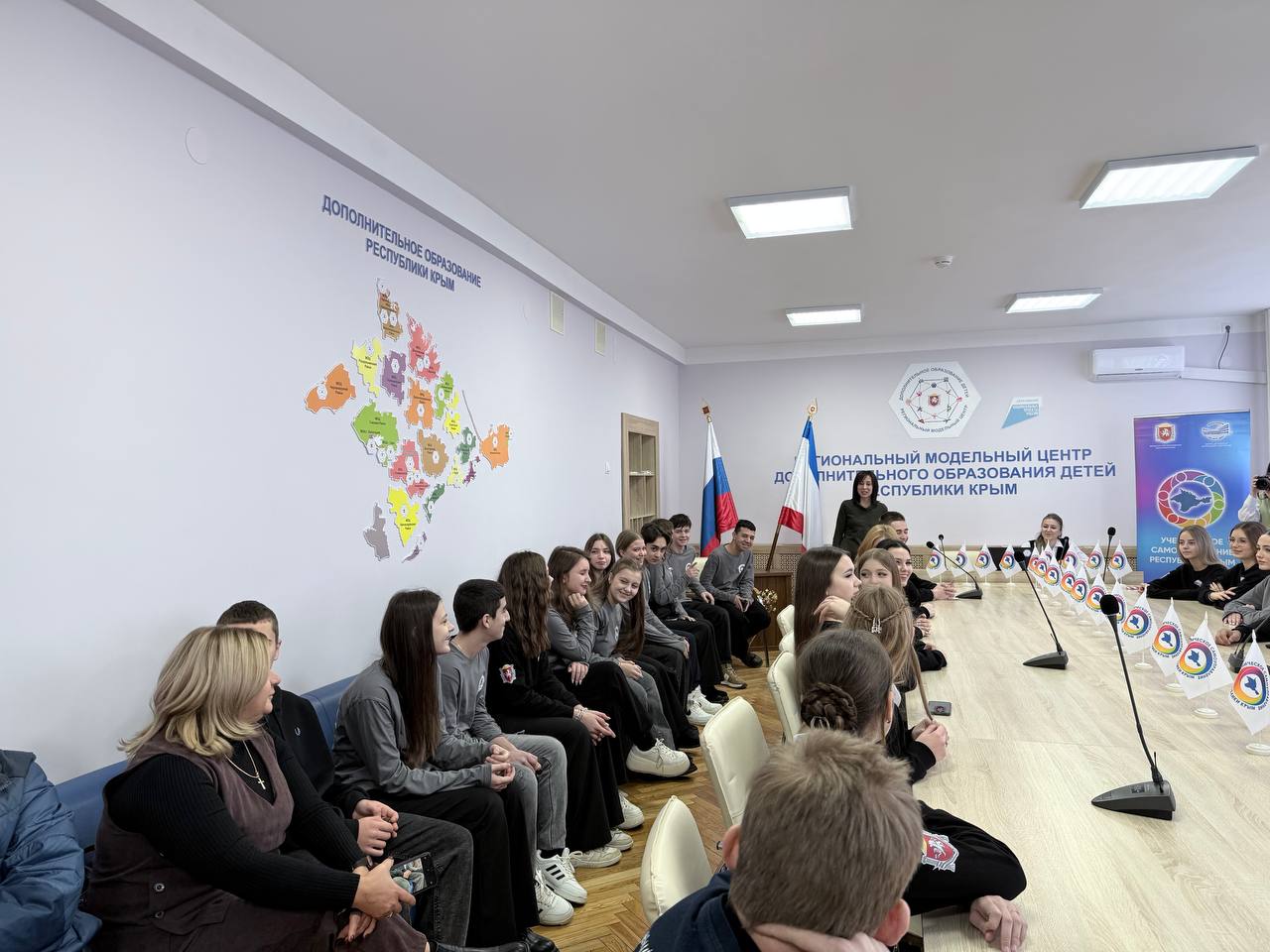 💬Крымские президенты ученического самоуправления рассказали о системе ученического самоуправления в Республике, поделились опытом работы в сфере реализации своих инициатив, а также предложили несколько проектов для совместной реализации и предложили создать устойчивую систему долгосрочного взаимодействия между советами обучающихся.